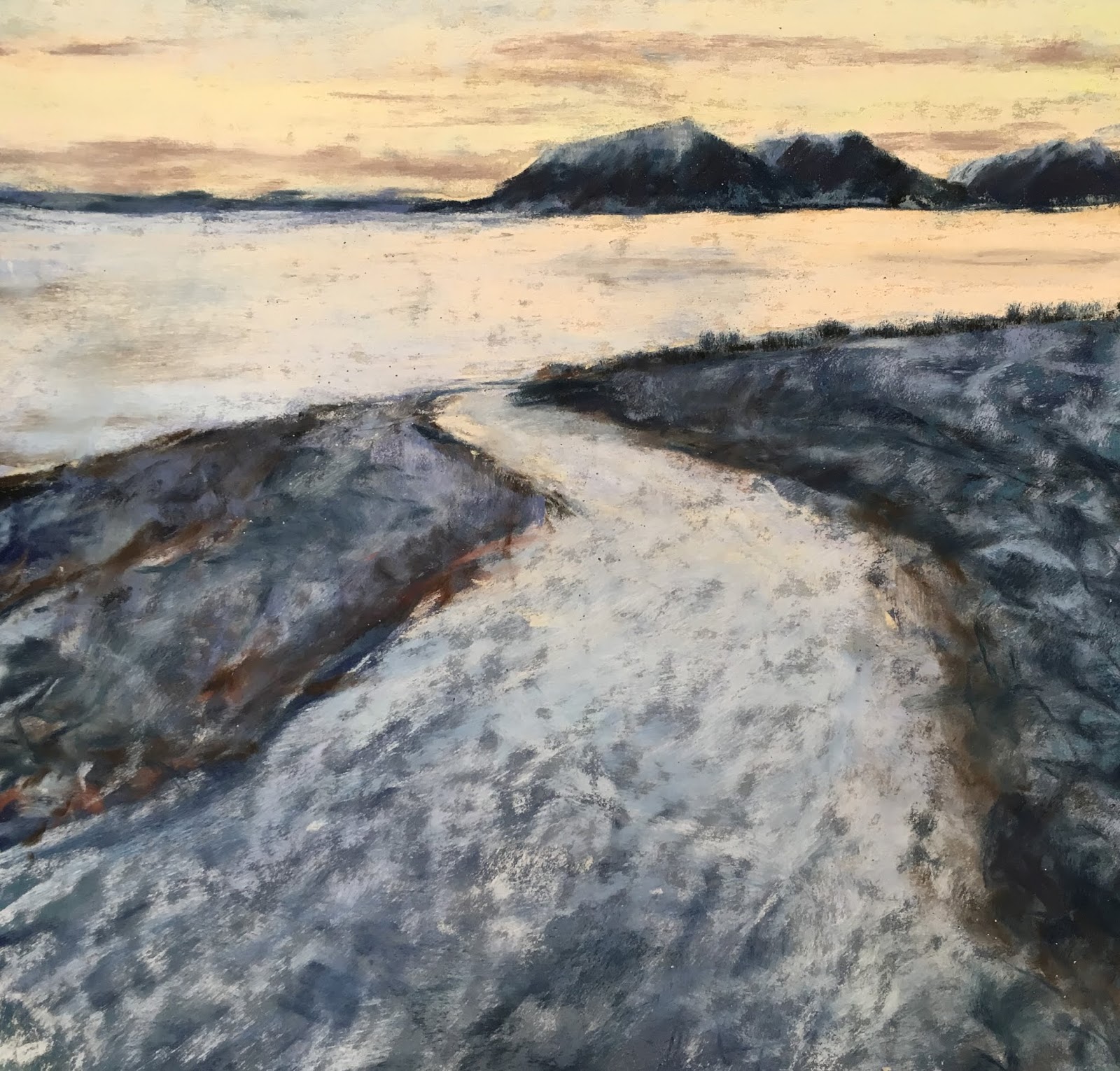 When I left for the workshop Friday, I was so excited about what I was doing with these canvases, I couldn't quite imagine focusing on pastels again. Now that I'm all excited about pastels, it's hard to know what to do with all the acrylics and canvases I just bought!